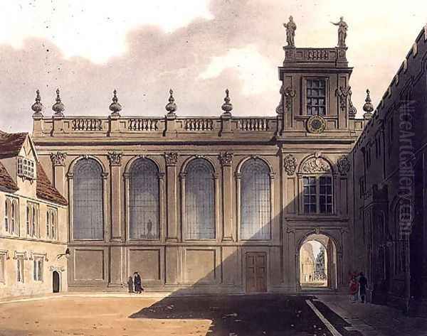 Exterior of Trinity College Chapel, illustration from the History of Oxford, engraved by J. Bluck fl.1791-1831 pub. by R. Ackermann, 1813