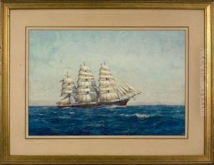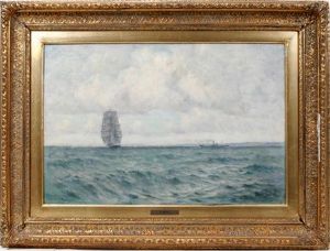 Sailing Ship In Choppy Seas With Stormy Sky Above