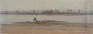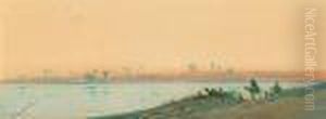 Evening On The Banks Of The Nile; The Pyramids Of Gizeh