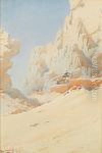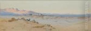 Desert Scene With Figure Before An Oasis, Together With Another Similar Of Figures Beore Desert Ruins, A Pair