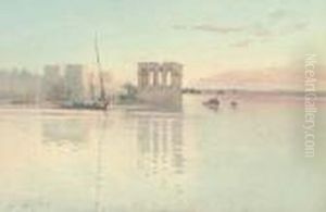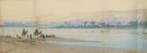Bedouins Loading Barges On The Nile At Dusk; And A Barge On The Nile