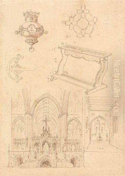 Bring the timeless beauty of Augustus Pugin's Designs for Gothic Ornamentation, a Kneeler, and Two Sketches of the Interiors of Gothic Churches into your home with a handmade oil painting reproduction. Carefully recreated on canvas by skilled artists using traditional techniques, this piece captures the delicate brushwork, subtle light, and vibrant color of the original masterpiece. With museum-level quality and rich texture, it brings elegance and artistic depth to any space. Enjoy free shipping and make this masterpiece a part of your personal collection.