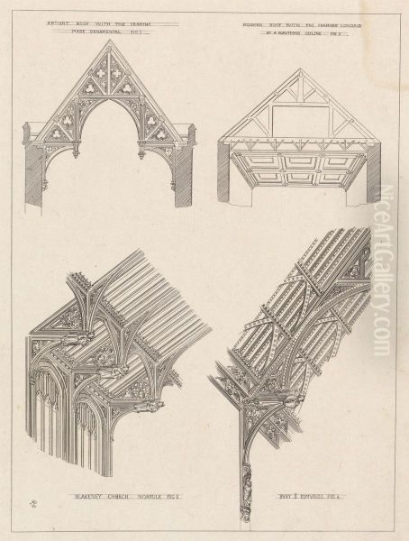 Bring the timeless beauty of Augustus Pugin's Sketches of Antient (sic) Roof with Framing Made Ornamental, Fig. 1: Modern Roof with the Framing Conceald (sic) by a Plastered Ceiling, Fig. 2; Blakeney Church Norfolk, Fig. 3; Bury St into your home with a handmade oil painting reproduction. Carefully recreated on canvas by skilled artists using traditional techniques, this piece captures the delicate brushwork, subtle light, and vibrant color of the original masterpiece. With museum-level quality and rich texture, it brings elegance and artistic depth to any space. Enjoy free shipping and make this masterpiece a part of your personal collection.