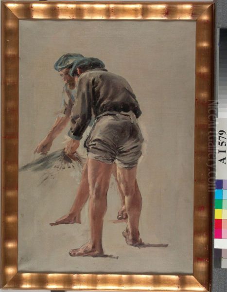 Kaksi italialaista kalastajaa, harjoitelma Nuotanveto Korsikan rannikolla-nimista maalausta varten