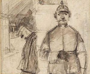 Two Standing Figures, One Holding A Staff In His Left Hand
