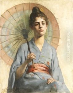 Kvinna I Kimono Och Parasoll (sjalvportratt?)