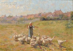 A Peasant Girl Drivingthe Geese And Catttle Back A Summer's Evening