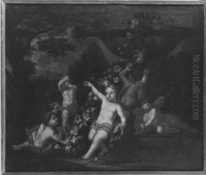 Puttengruppe mit Blumen