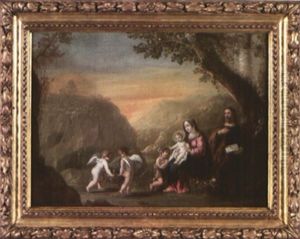 Die Heilige Familie Mit Dem Johannesknaben In Einer Bewaldeten Landschaft