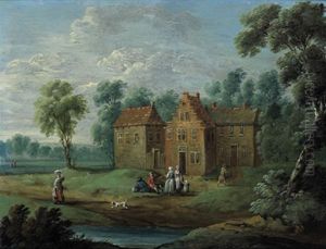 A Portrait Of Jacques-jean Cremers And His Wife Dancing On A Garden Terrace Surrounded By Other Members Of The Family... (+ An Elegant Company...; Pair)