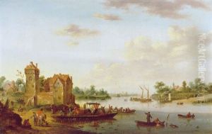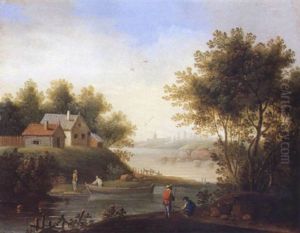 A River Landscape With Wagons And Townsfolk On A Path And Boats (+ An Extensive Landscape With A Windmill And Figures, A Canal Beyond; Pair)