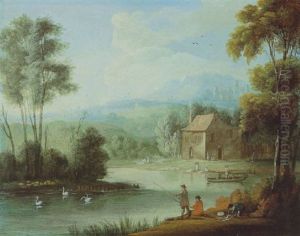Paesaggio Fluviale Con Scena Mitologica (euridice Morsa Dal Serpente?)(river Landscape With Mythological Scene (eurydice Bitten By A Snake?))