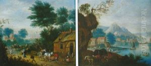 River Landscape With Horsemen On A Path And Fishermen On A Bank