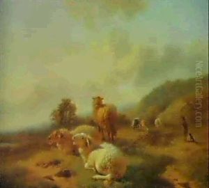 Sheep In A Landscape, A Drover Beyond