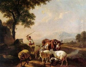 A Shepherd With His Cattle In A Landscape