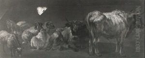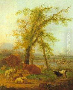 Peasants Resting With Cattle In A Sunlit Landscape