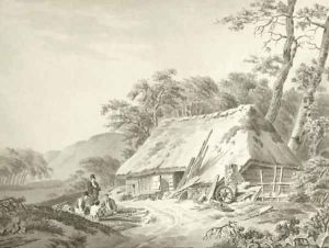 Personnages Et Troupeau Pres D'un Moulin A Eau Dans Un Paysage Vallonne