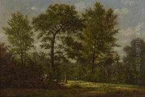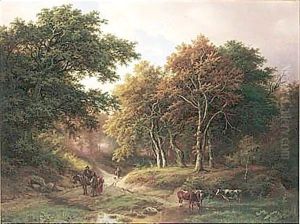 A Wooded Landscape With A Herdsman And His Cattle Resting Under Anoak Tree