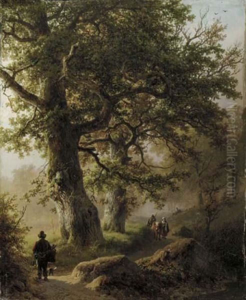 Boschgezigt Bij Morgenstond: Travellers On A Forest Path
