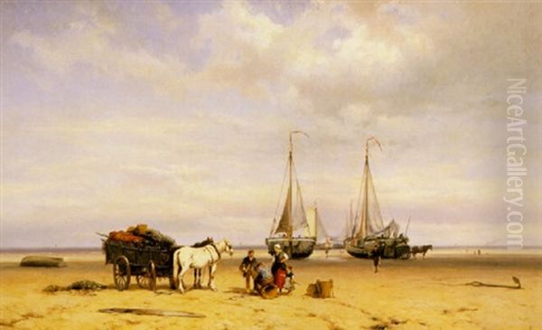 Bring the timeless beauty of Barend Cornelis Koekkoek's Fishermen Unloading The Catch On Scheveningen Beach into your home with a handmade oil painting reproduction. Carefully recreated on canvas by skilled artists using traditional techniques, this piece captures the delicate brushwork, subtle light, and vibrant color of the original masterpiece. With museum-level quality and rich texture, it brings elegance and artistic depth to any space. Enjoy free shipping and make this masterpiece a part of your personal collection.