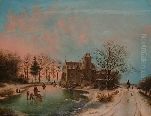 Bring the timeless beauty of Barend Cornelis Koekkoek's Skating On The Frozen Lake; A Winter's Evening. into your home with a handmade oil painting reproduction. Carefully recreated on canvas by skilled artists using traditional techniques, this piece captures the delicate brushwork, subtle light, and vibrant color of the original masterpiece. With museum-level quality and rich texture, it brings elegance and artistic depth to any space. Enjoy free shipping and make this masterpiece a part of your personal collection.