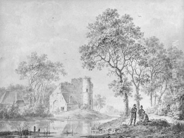 Travellers Resting On A Riverbank