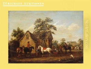 Horsemen Halting At A Country Inn With Travellers Passing By
