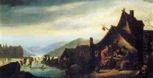 A Landscape With Peasants Selling Chickens Outside A Cottage