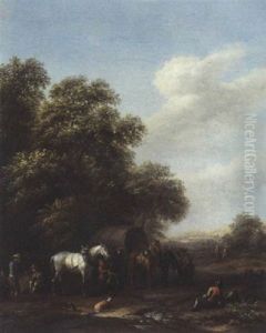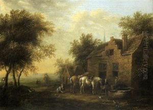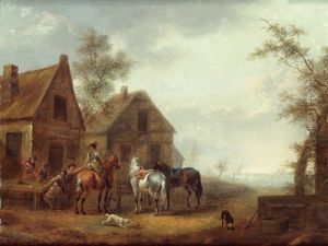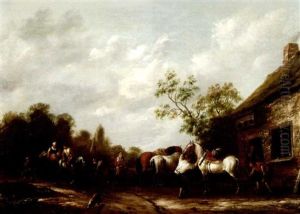 Travellers Resting And Watering Their Horses At A Tavern