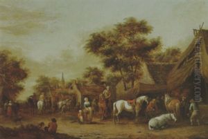 Travellers Halting On A Village Street