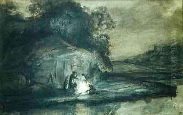 Nocturnal landscape with a river and shepherds