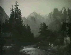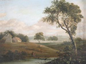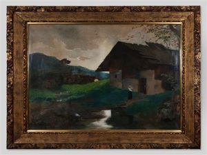 Travellers at halt by a cottage