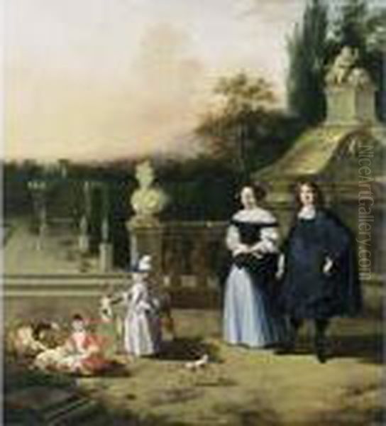 Bring the timeless beauty of Barent Graat's A Portrait Of A Gentleman And His Wife, Both Standing Full-length With Their Two Children Playing With A Goat And Sheep, Together With A Dog, All In A Garden Setting into your home with a handmade oil painting reproduction. Carefully recreated on canvas by skilled artists using traditional techniques, this piece captures the delicate brushwork, subtle light, and vibrant color of the original masterpiece. With museum-level quality and rich texture, it brings elegance and artistic depth to any space. Enjoy free shipping and make this masterpiece a part of your personal collection.
