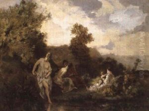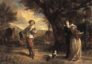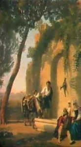 Galante Szene Mit Jungem Edelmann Und Damen Unter Baumen