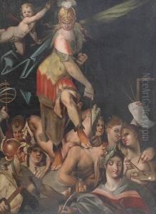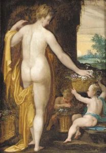 Bartholomaeus Spranger was a Flemish painter, draughtsman, and etcher who became a court painter in Prague. Born in Antwerp, he received his initial artistic training in his hometown, which was a leading center for the arts in the 16th century. Spranger's early career included a period of work in Paris and, importantly, in Italy, where he was influenced by the work of Parmigianino and other Mannerist artists. It was during his stay in Rome that he developed his distinctive style, characterized by elongated figures and complex, often erotically charged compositions.
