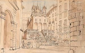 A Capriccio View Of A Roman City, The Cupola Of A Church To Theleft