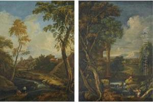 An Italianate Landscape With Nymphs Bathing In The Foregroundand Classical Ruins Beyond
