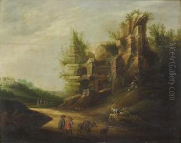 Bergers Et Leur Troupeau Devant Des Ruines Antiques