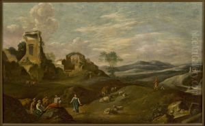 Un Paysage Italianisant Avec Des Personnages Pres De Ruines