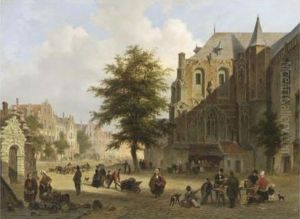 Bartholomeus Johannes van Hove was a Dutch painter and a prominent figure in the art scene of the Netherlands during the 19th century. Born on October 28, 1790, in The Hague, van Hove began his artistic journey under the tutelage of his father, Hubertus van Hove, who was himself a painter and a theatrical scene designer. This early exposure to the world of stage design had a lasting influence on van Hove's later works, which often incorporated architectural elements and dramatic perspectives.