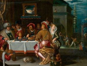 Interior Of A Palace With Elegant Figures Dining (parable Of Lazarus And The Rich Man)