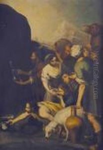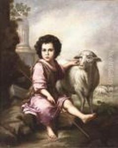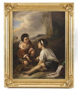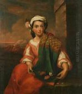 A Young Girl Seated In A Landscape, Holding A Basket Of Fruit And A Plate Of Fish