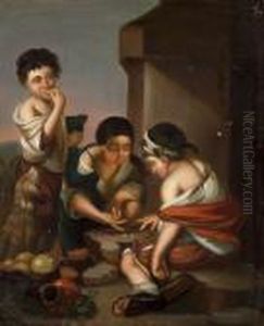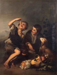 Boys Seated In A Landscape Eating Melon