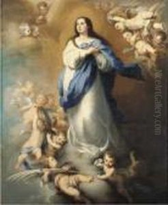 The Assumption Of The The Blessed Virgin Mary Full Length Portrait Amongst Clouds And Cherubs