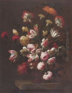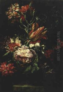 A Still Life With Roses, Tulips, Carnations And Other Flowers In An Urn
