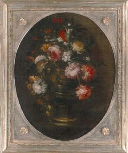 Nature Morte Au Vase De Fleurs Dans Un Vase Sculpte