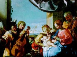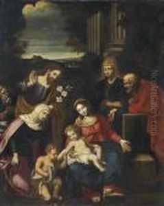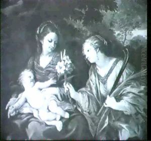 Bring the timeless beauty of Bartolomeo Cavarrozzi's The Holy Family with St Catherine into your home with a handmade oil painting reproduction. Carefully recreated on canvas by skilled artists using traditional techniques, this piece captures the delicate brushwork, subtle light, and vibrant color of the original masterpiece. With museum-level quality and rich texture, it brings elegance and artistic depth to any space. Enjoy free shipping and make this masterpiece a part of your personal collection.