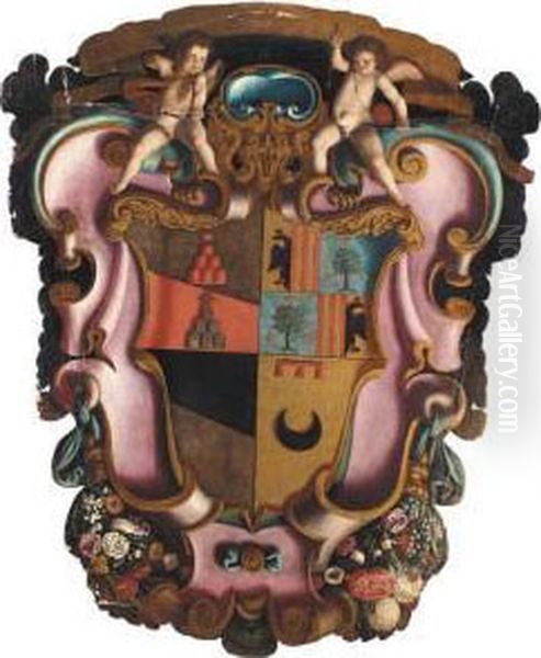 A Stemma Celebrating The Marriage Of Antonio Di Francesco Di Giovanni Battista Michelozzi And Maria Maddelena Di Pier Giovanni Di Cosimo Geraldini