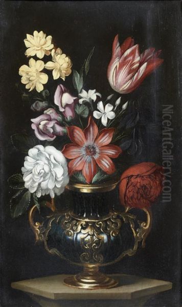 Bouquet De Fleurs Dans Un Vase Monte En Bronze