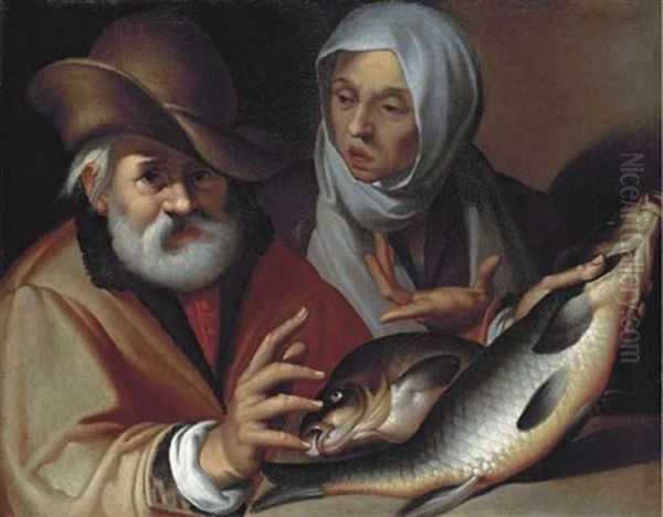 An Old Couple Selling Fish (collab. W/studio Of Passarotti)